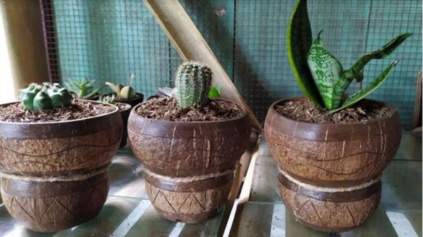 Suami Istri di Manado Buat Ide Kreatif Pot Bunga Unik dari Limbah Tempurung Kelapa