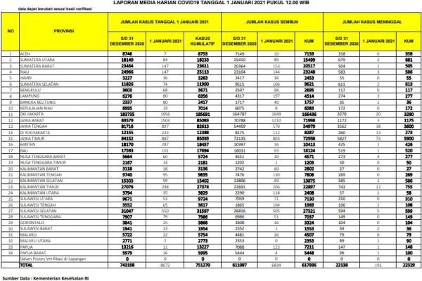 Melansir data laporan media harian Covid-19, selain kasus terkonfirmasi positif juga ada penambahan 71 pasien sembuh. Sementara korban meninggal tanpa perubahan data.