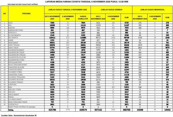 Total keseluruhan update covid untuk Sulut per Jumat hari ini yakni 5.528 orang positif, 4.716 sembuh dan 210 meninggal dunia.